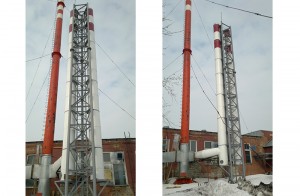 Фото изготовленных нашим заводом дымовых труб на растяжках в Нижневартовске: